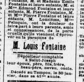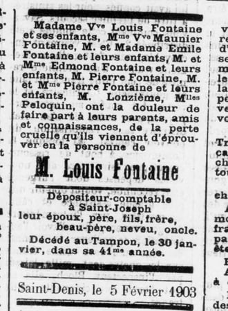 Faire-part de décès de Louis Fontaine (Journal de La Réunion, 6 février 1903)