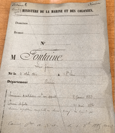 “Louis” François FONTAINE, originaire de Saint-Louis, est venu habiter Saint-Pierre à l’âge de 23 ans. Descendant d’une longue lignée d’agriculteurs, il choisit une carrière administrative, sans doute en raison d’une santé fragile.