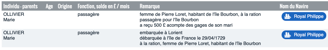 Voyage de Marie OLIVIER sur le Royal Philippe (Source : Mémoire des Hommes)